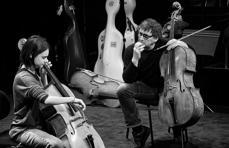 Éric-Maria Couturier teaches at both the Paris and Lyon Conservatories. Polymorphous virtuoso, he obtained the highest distinctions during his studies and now performs on major international stages, solo or with other renowned artists. He has been part of the Ensemble Intercontemporain since 2002. He worked with the greatest conductors and is invited as a soloist in the most prestigious cello concertos of the classical repertoire. He also mingle with the improvised music scene and pursues eclectic experiments: video-game scores, electronic music, choreographic work...